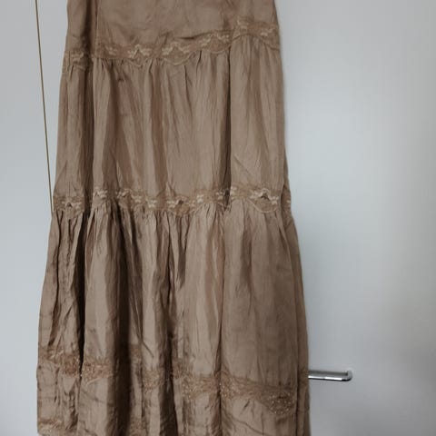 Laadukas hame moneen käyttöön. Oli itselle liian iso, kerran käynyt päällä eli kunto täysin moitteeton. Taskut edessä ja takana. Koko 38. Polvipituinen.