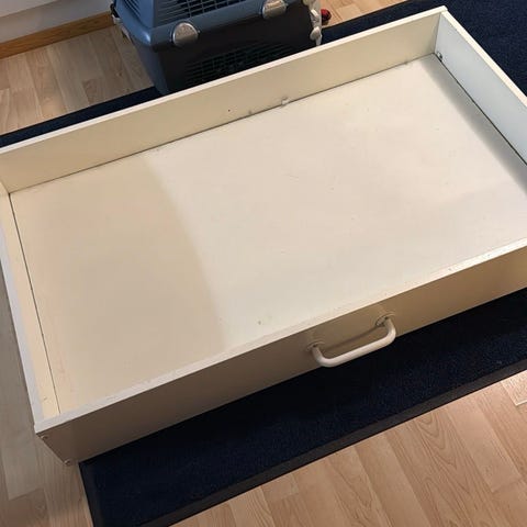 Ikea småstad säilytyslaatikko. Laatikossa kulumaa, toimii hyvin, lisäksi patja päälle.