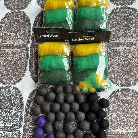 Myytävänä huovutusvillaa, kimallekuitua, huopakangasta, huopanappuloita. Puhtaat ja siistit, käyttämättömät. Hintapyyntö koko paketille 8 €.