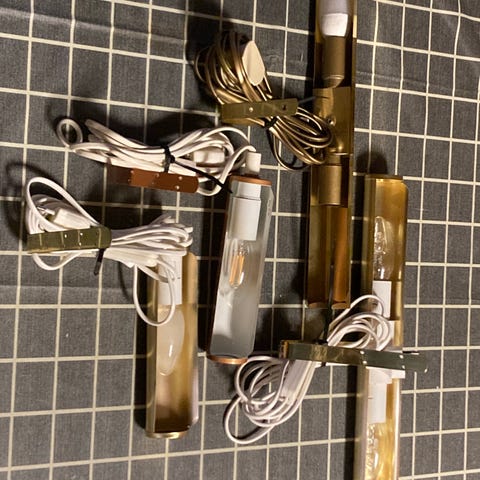Kauniit messinki valaisimet. Korkeus 45 cm. Kuvan varjostimen kanssa 60 cm. Vaatii maadoitetun pistokkeen vaihdon, sekä vain yksi varjostin.