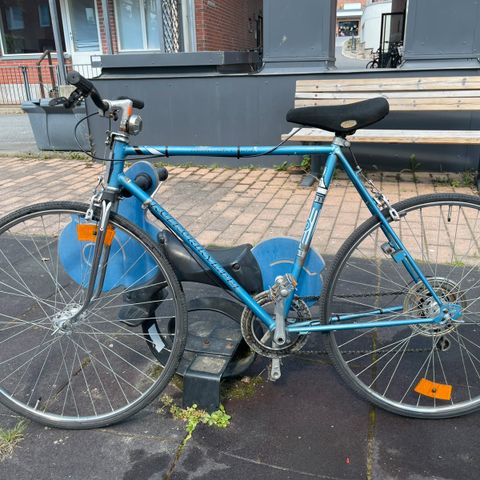 Vanha mutta toimiva ja uniikki jalkajarru tässä pyörässä.
