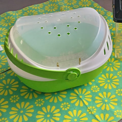 Myydään lasihäkki. Punaiset muovikannet mahdollistaa häkin siivoamisen. Häkin koko on: korkeus 44 cm, syvyys 46 cm ja leveys 120 cm.