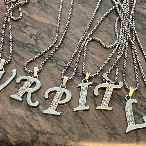 Noin 100 paria (ei tarkkaan laskettu) erilaisia kirjain korvakoruja (yht.10€). Uusia mutta joistain pakkauksen tausta sirpaleina.