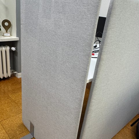 Laadukkaat Martelan toimiston sermit / väliseinät. Jäivät ylimääräisiksi. Väri on harmaa, mutta näitähän voi myös maalata. Kaikki jalat ja osat ovat tallella. Myös yksi kulmapala löytyy, jolla saa tehtyä huonemaisen ratkaisun. Ovat käytettyjä, mutta eivät ihan kolhiintuneita kuitenkaan. Kangas on ehjää, laadukasta ja sen voi puhdistaa. Sermejä on kaksi korkeampaa ja loput matalampia. Kuvassa näkyvä pystysuuntainen ”jälki” on varjo.