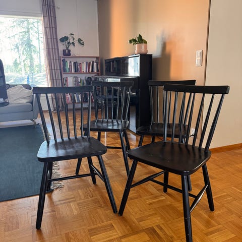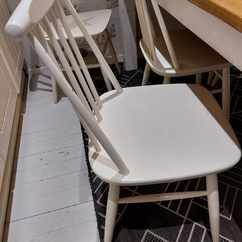 Valkoiseksi maalattuja ja ajan kuluessa maalit vähän lohkeilleet. Saattaa jossainvaiheessa tarvita liimausta.