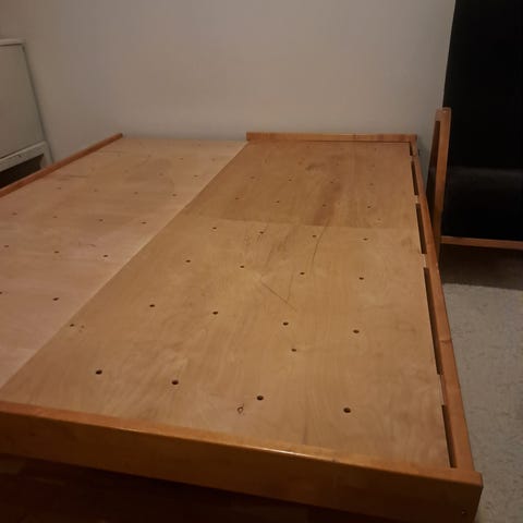 Myydään puinen laveri / daybed 60–70-luvulta. Tukeva ja hyväkuntoinen, joitain pieniä käytön jälkiä löytyy, mutta yleisilme on edelleen siisti. Pohjassa tuuletusreiät, reunat hieman korotettu.