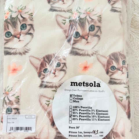 Metsola Rib 2x2 Cute Bambi -ribbikangas icy lilac -värissä. Kuosissa on bambikuvioita ja kukkia vaaleanlilalla pohjalla. Materiaali on ribbineulosta, koostumus 95 % puuvillaa ja 5 % elastaania. Kankaan leveys on noin 98 cm ja pituus 1 m. Soveltuu esimerkiksi vaatteiden ja asusteiden ompeluun sekä muihin ompeluprojekteihin.