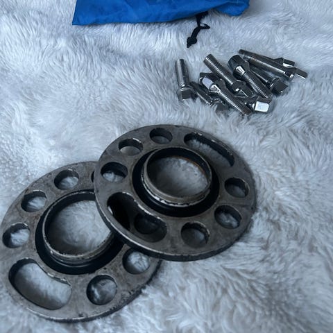 2kpl alumiinisia 5mm spacereitä 100x4 jaolla ja 57,1mm keskireiällä. Uuden veroiset, peräkärryn alla käytetty ja hommattu leveämmät