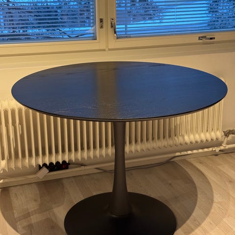 Hyväkuntoinen tyylikäs pyöreä pöytä. Halkaisija 100 cm. Jalka on erittäin tukeva (painava), joten pöytä ei keikkaa helposti. Pöydän kannessa on pieni "hämähäkki" liian tiukasta ruuvin kiristyksestä johtuen (lähikuva pyydettäessä), muuten kuin uusi. Nouto Espoon Kaitaalta. Mahdollisuus kuljetusapuun lähiseudulle erikseen niin sovittaessa.