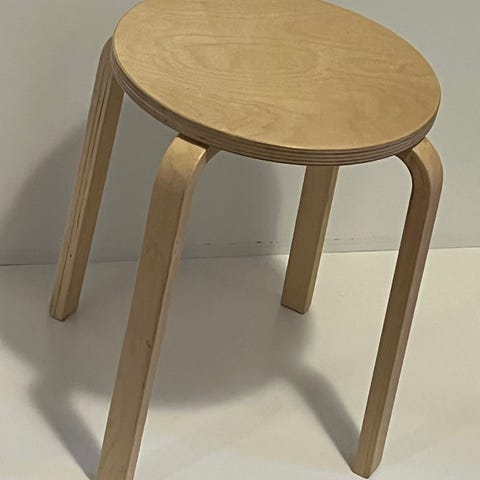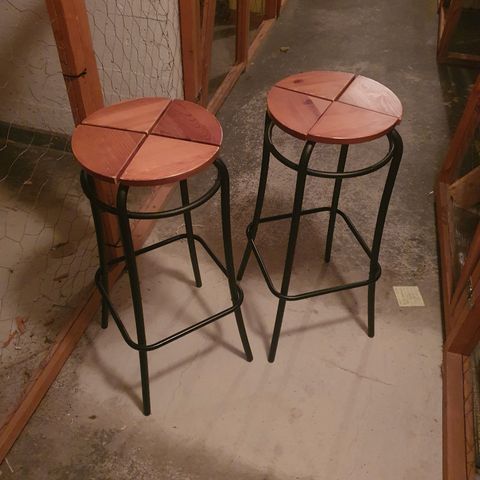 Ikäisekseen hyvin säilynyt, siistikuntoinen ja tukeva jakkara 70-luvulta ylimääräisenä. Vinyylipäällysteen halkaisija 30cm. Metallijalat, joissa kaikissa "tupet".