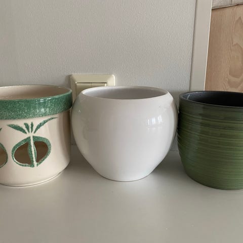 Kummassakin samat mitat: korkeus 12cm, halkaisija 13cm reunasta reunaan. Myydään yhdessä, ei postitusta.