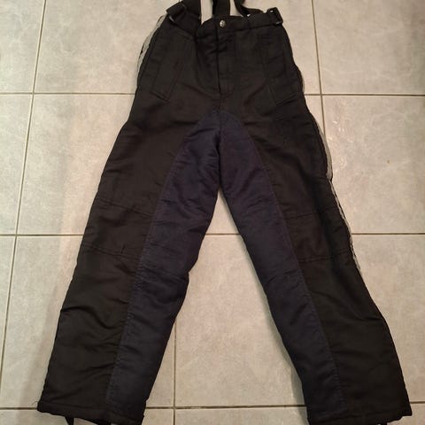 CRW topparatsastushousut lapselle, koko 140. Väri musta. Housuissa on vahvikkeet takapuolessa ja polvissa sekä heijastinyksityiskohtia lahkeissa.