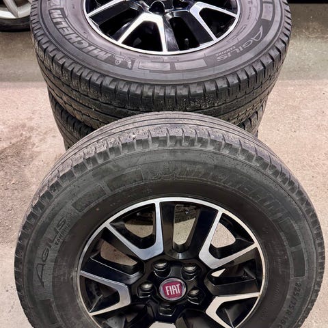 Myydään Fiat Ducaton alkuperäiset OEM-alumiinivanteet kesärenkailla.