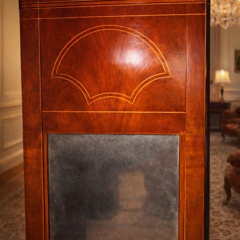 Tukholman Strand hotellissa hyvin palvelleet kustavilaiset pieni pöytä 60cm*49cm,korkeus 65cm. Peilin koko on 137cm* 56,5cm.