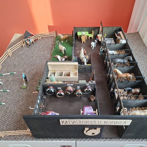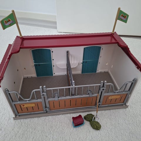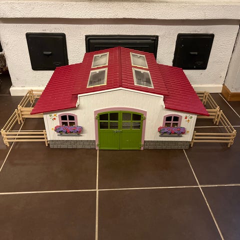 Myydään Schleich hevostalli, punainen eli vanhempi versio. Talli on hyvässä kunnossa, mutta karsinoiden ulko-ovien nimikyltteihin on liimattu itse tehdyt paperi nimilaput (näkyy kuvissa), jotka uskon että saa otettua pois raaputtamalla! Hinta on neuvoteltavissa, jos haluaa ostaa mukana hevosia tai muita tarvikkeita!