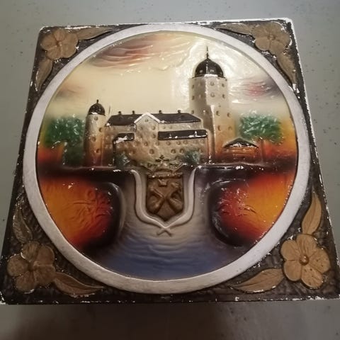 Kuvan mukainen vanha kipsitaulu Viipurin linna, koko 37x37 cm, haku keskustasta tai postikulut ostajalle.