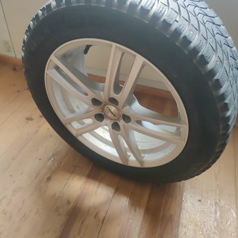 Volvon alkuperäiset vanteet Mazzini eco 602 kumeilla. Renkaissa pintaa 6-7mm. Parissa vanteessa enemmän kolhua ja pari siistimpää.