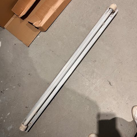 Tallista irroitettu toimiva loisteputkivalaisin jossa led putket. Normit mukaan. Mitat kuvissa.