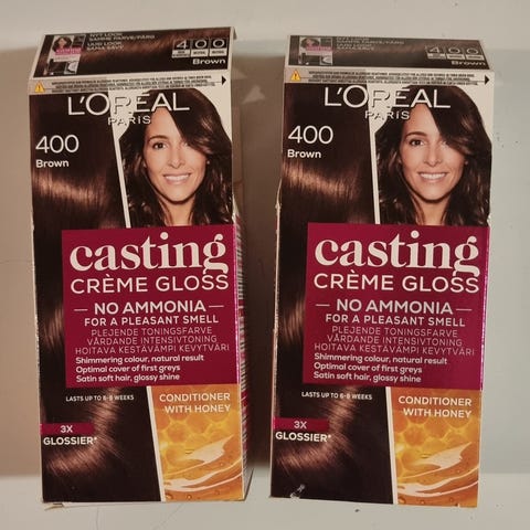 L’Oréal Casting Crème Gloss hiusväri on ammoniakiton kestoväri. Tuote on hoitava värivoide, joka on tarkoitettu hiusten värjäämiseen kotikäytössä. Pakkauksessa on hiusväri ja hoitoaine, jotka antavat värin ja kiillon hiuksille. Soveltuu aikuisille käyttäjille hiusten sävyn muuttamiseen tai raikastamiseen.