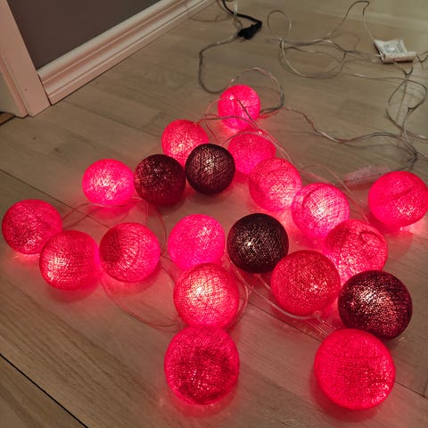 Myydään Airam Sydän -koristevalosarja, jossa 20 kpl valoja. Verkkovirta. Johto kirkas, 6 m. Lamppuväli 20 cm, sarjan pituus 3,8 m.