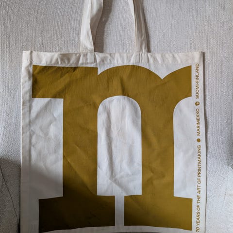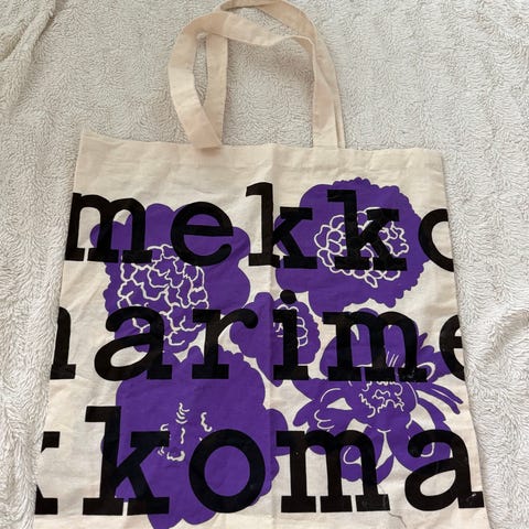 Marimekko kangaskassi unisex. Kassi on valmistettu kankaasta ja siinä on pitkät kantohihnat olalla kantamista varten. Kassissa on suuri Marimekko-logokuviointi. Sopii arjen kantokassiksi esimerkiksi ostoksille tai muuhun tavaroiden kuljettamiseen.