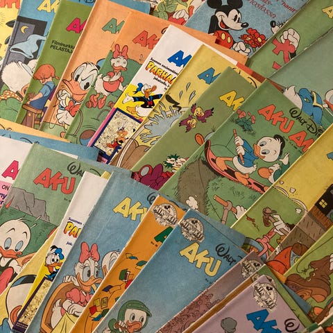 Vino pino vm -80 Aku Ankka sarjakuvia. Useampi tuplakappale. Ei kaikkia vuoden lehtiä.