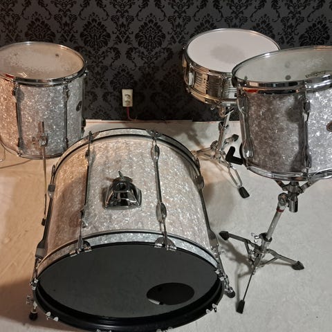 Projektista ylijäämät eteenpäin. 22x16,16x16,13x13,12x12. 12” tomi muista poiketen musta. Löytyy mukaa haikka ständi, perus taman basaarin pedaali, snare ständi ja yks pelti teline.