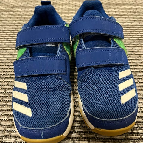 Paljon juostu, menee vielä pihaleikkeihin seuraavalle. Koko 33. Tarrat pitävät.