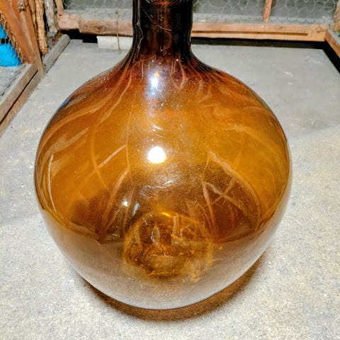 Kaksi puhallusvirhettä, toinen isompi ja toinen pienempi, toinen näyttää lohkeamalta mutta on sormelle ihan sileä. Näyttää kauniilta ja sopii moderniin/boheemiin sisustukseen.