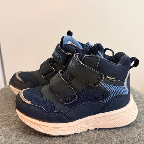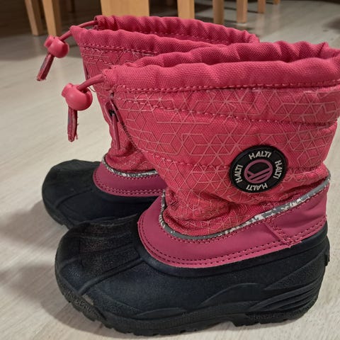 Halti lasten välikausikengät, koko 26. Väri punainen. Unisex-malli. Kengissä on tarrakiinnitys, joka helpottaa pukemista. Käytetty yksi kausi. Päällinen on tekstiilimateriaalia, pohja vaaleaa kumia/synteettistä materiaalia. Kengissä heijastinyksityiskohtia. Tästä alkavalle välikaudelle hyvät kengät!
