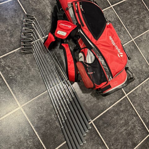 Hyvä setti ,Kantobag,Driveri,väyläpuu raudat 4-9 + P ja S ja putterit 2kpl,mailat grafiittivarrella.