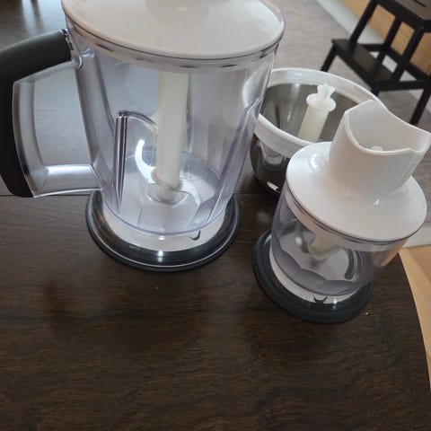 Paljon osia; Leikkuri, vaahdotin, mitta-astia, vaahdotin.