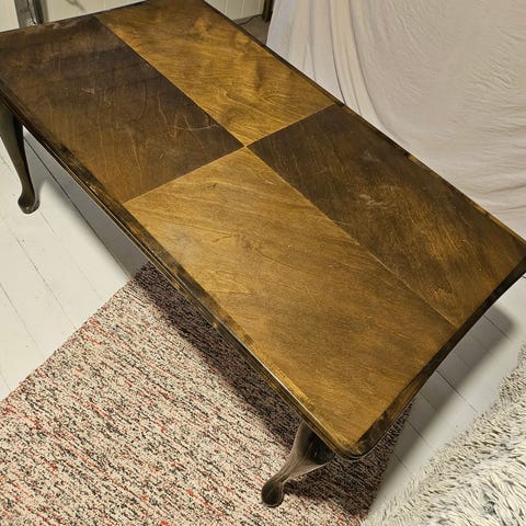 Pyöreä ja täyttä puuta oleva tummanruskea sohvapöytä kauniilla jalalla. Kaikin puolin ehjä ja hyvässä kunnossa, lukuun ottamatta pientä kulumaa pöytätasossa, sekä jalassa. Myydään muuton tieltä ja haku mielellään ennen 7.3!