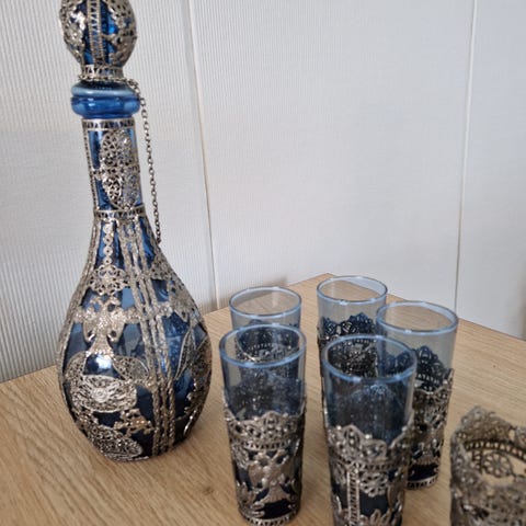 Sininen vanha lasikarahvi. Ehjä ja hyväkuntoinen. Korkeus 31cm. Nouto Korialta.