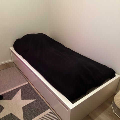 Sängyn koko: pituus 204,7cm, leveys 80,7cm.