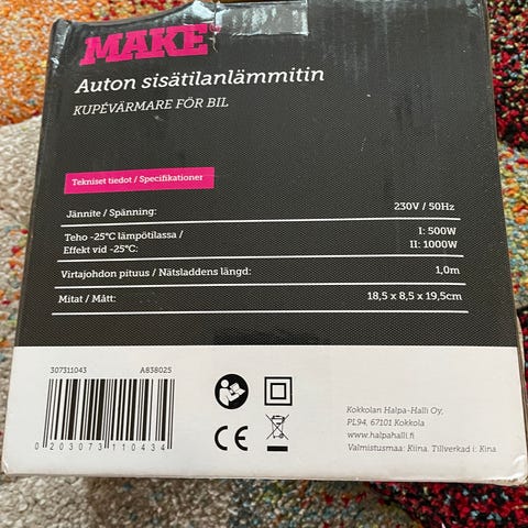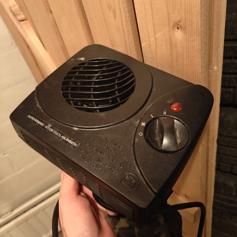 Viking PTC-19 autonsisätilanlämmitin. 230 V verkkovirtaan kytkettävä lämmitin ajoneuvon sisätilojen lämmitykseen.