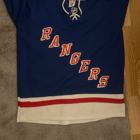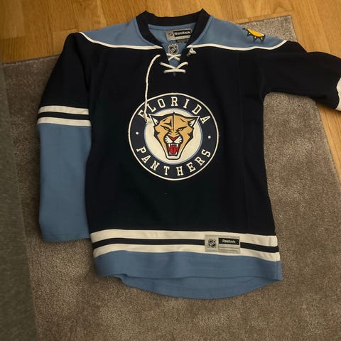 Valkoinen paita, jossa edessä Suomi-teksti ja leijonavaakuna sekä siniset tehosteraidat olkapäillä ja helmassa. Selkäpuolella Suomi-teksti ja siniset raidat.