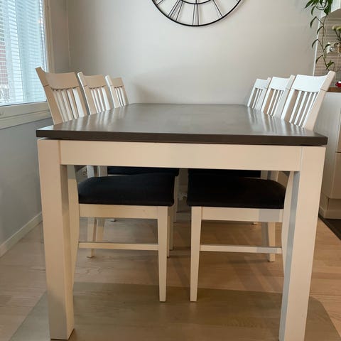Puinen 6 hengen ruokaryhmä.