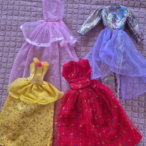 Barbie juhlamekkoja. Setissä 3 erityylisiä mekkoja Barbie-nukeille. Pesty.