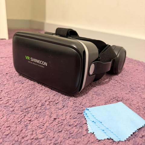 Myydään siistit VR-lasit, joissa puhelin asetetaan sisään.