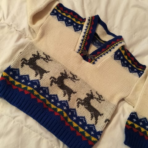 Raidallinen neule. Materiaalina 100% puuvillaa. Koko 104.
