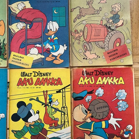 Huippusiistissä kunnossa olevat Aku Ankka lehdet yli 50 vuoden takaa;