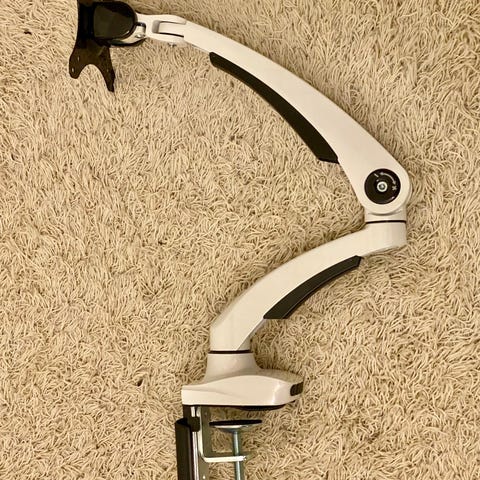 Hyväkuntoinen monitorivarsi/näyttöteline kahdelle näytölle ostettu Amazonista. On toiminut todella hyvin.