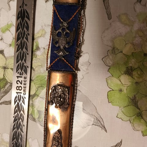 Myydään perimätiedon mukaan WWI n jälkeen sota tantereelle jäänyt kantajansa kaaduttua. Tästä ei faktaa ole. Mutta ollut suvussa monta sukupolvea. Miekassa melko paljon pintaruostetta, ja puisessa kahvassa pieni murtuma. Tarjoa rohkeasti hintaa!