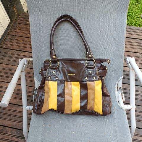 Konjakinruskea tekonahkainen käsilaukku ihanalle kukkaroklipsikiinnityksellä