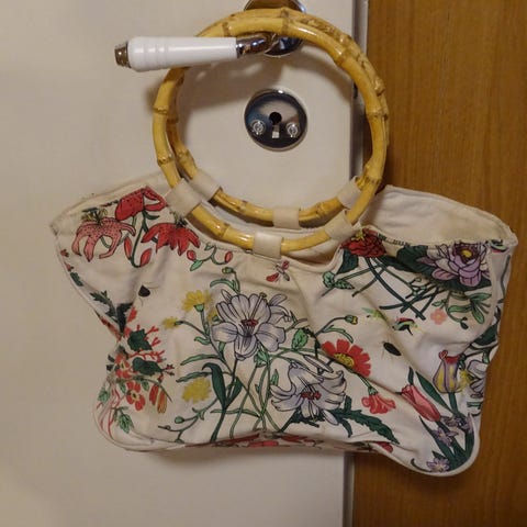 ruskea kukkaromallinen käsilaukku