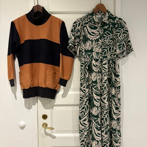 Kotimainen, käsin ommeltu vintage-mekko (design Annikki Karvinen). Arvioni mukaan materiaalina ohutta villakangasta, joka laskeutuu kauniisti. Takana vetoketju, edessä kaunis rypytys.