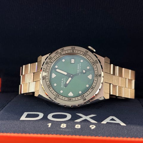 Erittäin vähälle käytölle jäänyt doxa. Takuu voimassa 18.2.2027. Mukaan kaikki laatikot, manuaali, täysi ranneke, hangtag, avainnauha, paperit ja alkuperäinen ostokuitti.