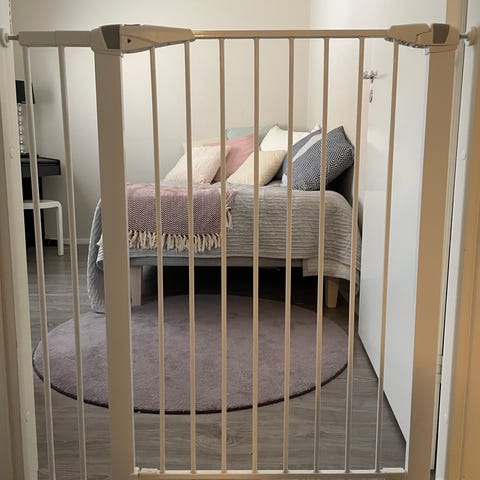 Portin lev. 75,5-85cm ja kork. 74cm. Ovi aukeaa molempiin suuntiin ja voi käyttää oikealle tai vasemmalle aukeavana.