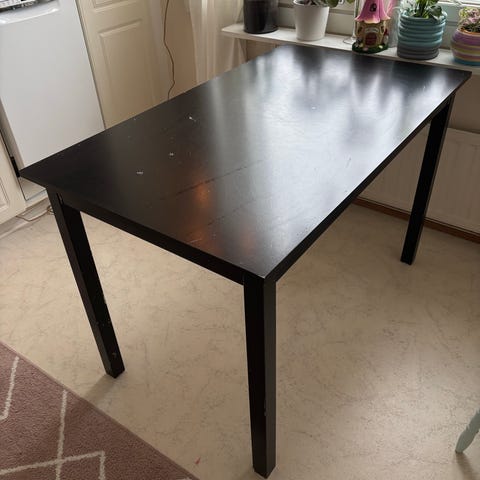 Jatkopalalla ainakin 10 hengen pöytä. Hyvässä kunnossa ja ehjä muuten, mutta pinnassa kulumaa. Pinta kunnostettavissa. Annetaan.